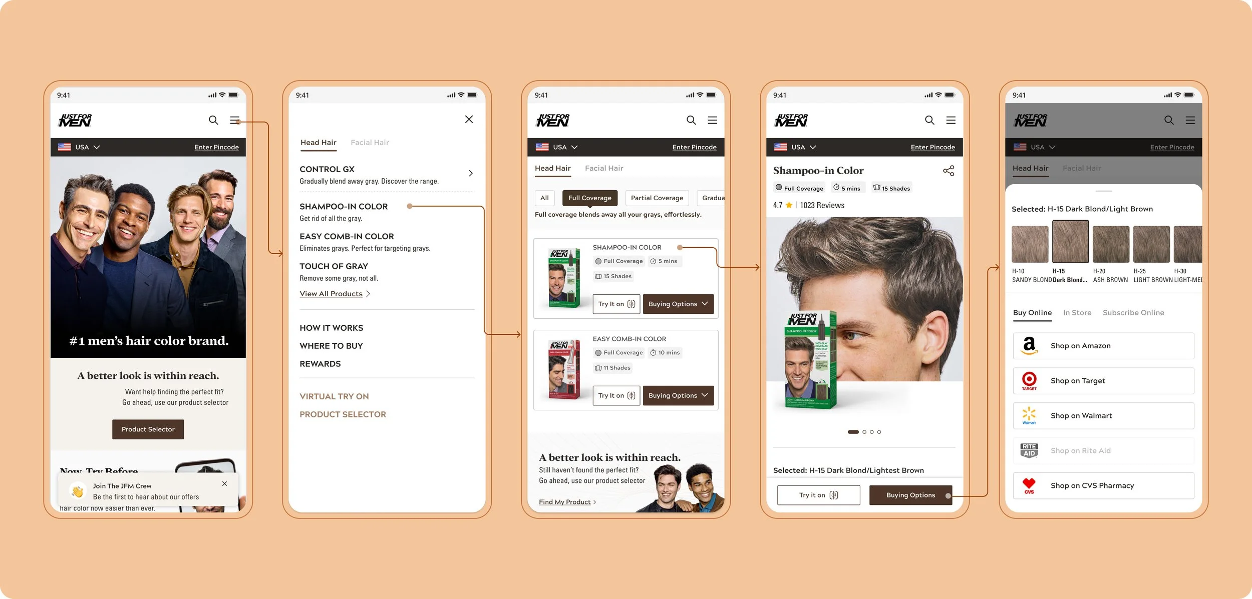 Breakdown of the design decisions that brought the Just for Men experience to life