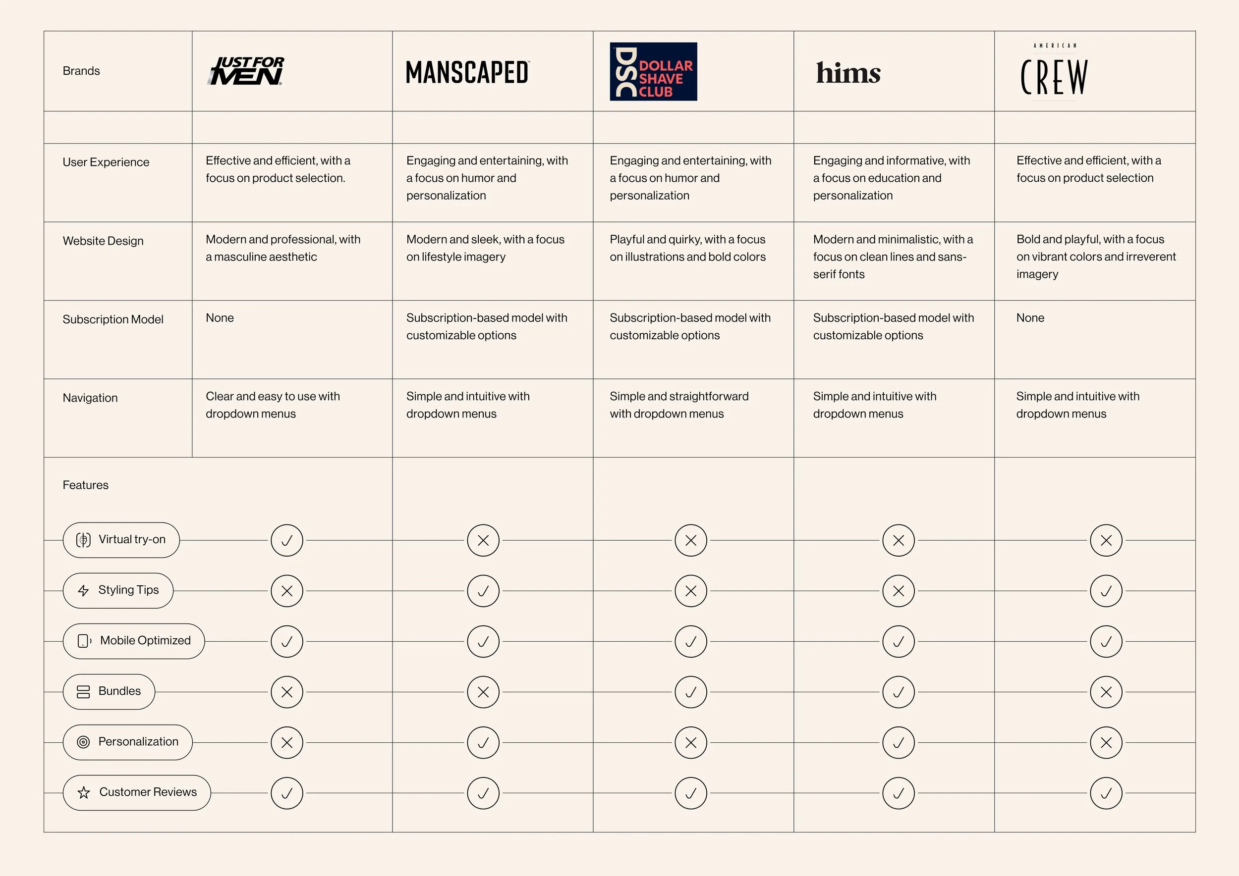 We conducted a comprehensive competitor analysis that provided a solid foundation for understanding the brand's position in the market and identifying opportunities for innovation.